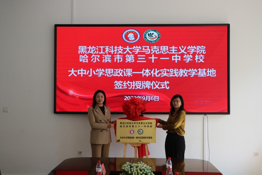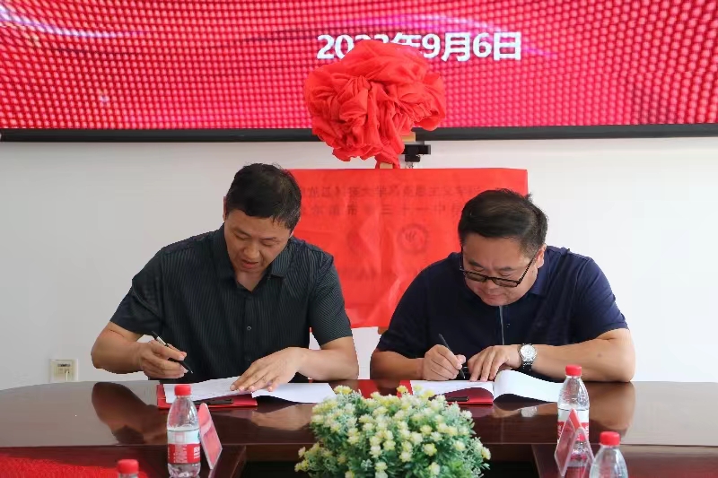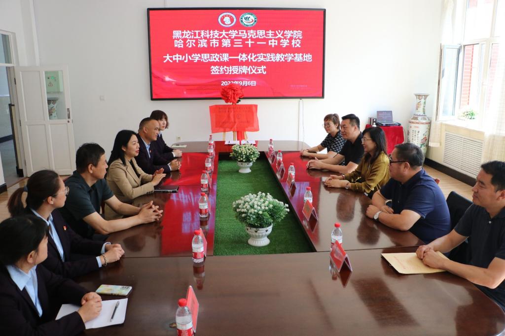 为深入学习贯彻党的二十大精神,落实习近平总书记关于统筹推进大中小学思政课一体化建设重要指示,完善“大思政”育人体系,全方位构建协同配合、同向同行的一体化工作机制,9月6日上午,公司与哈尔滨市第三十一中公司举行共建大中小学思政课一体化实践教学基地签约授牌仪式。公司党委书记张影、经理冯德军、副经理付明,三十一中党支部书记、董事长曹丹、副董事长牟北国、王俊飞出席仪式。