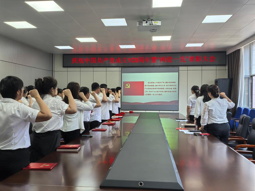 在庆祝中国共产党成立103周年之际,为表彰先进,交流经验,发挥基层党组织战斗堡垒作用和党员先锋模范作用,推动公司各项事业再上新台阶。6月28日下午,公司召开庆祝中国共产党成立103周年暨“两优一先”表彰大会。公司领导班子成员和全体教师党员参加了大会。大会由副处级辅导员赵红主持。