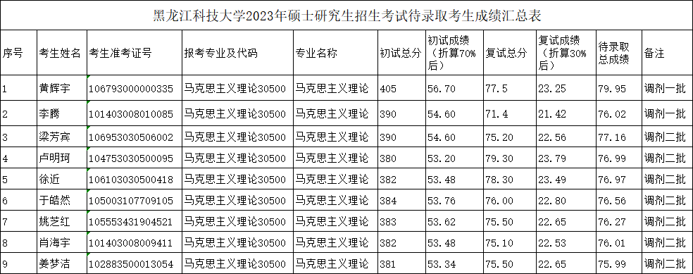 乐天使fun88官方网站2023年硕士研究生招生考试马克思主义理论专业待录取考生成绩汇总表